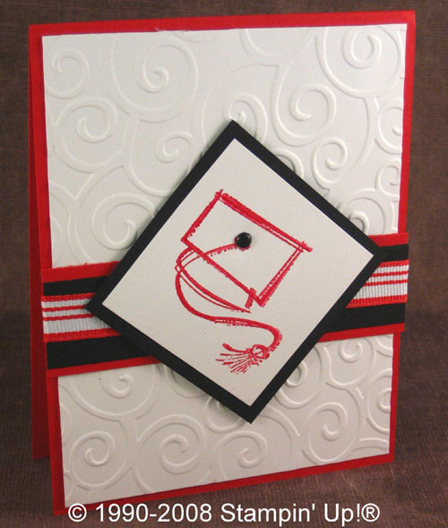 My cousin is graduating from High School this weekend! A few weeks ago Lisa (My Aunt) came over to work on the Graduation announcements for Phoebe. Her school colors are Red and White. So we stuck to that color combination and added in a little Black to give the "Graduation Feel" to the cards. Here's what we came up with…