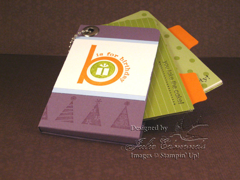 And next the Mini Photo Album. It hangs on a bag or backpack and the pages swing out. I choose a Birthday Theme for this book.