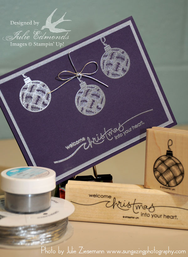 The silver images on the card were embossed. This card features stamps from Christmas Classics and Heard From The Heart Stamp Sets.