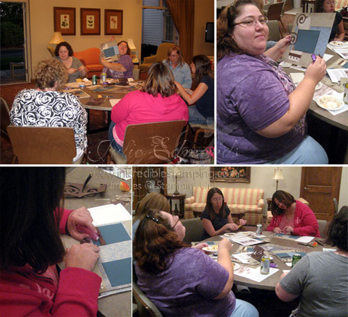 On Saturday I had the first of my new monthly scrapbook crops at Schrader Family Center in Ballwin. It was a fabulous fun girls night out! Everyone who came received supplies to create a scrapbook page layout. Everyone was free to work on whatever they wanted – of course we all made the sample page and then sat around chatting, munching on snacks, and looking at the scrapbooks some of us brought along to work on.