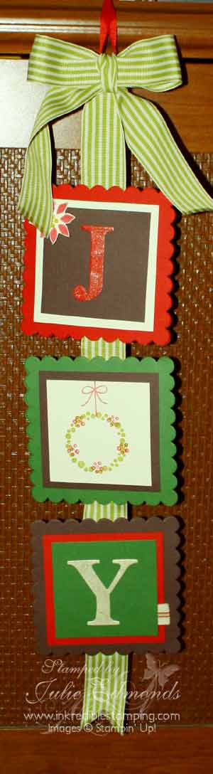 A couple of months ago at our Team Meeting we swapped 3-d Gift type items for Christmas at our meeting. I created this Joy Door Hanger and I've been meaning to get a photo of it so I could put it up to share with all of you. I finally did…