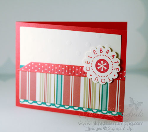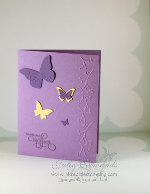 The butterflies on this card come from the Beautiful Wings Emobsslit which has to be one of my favorite items in the Occasions Mini! I would love to hear what your favorite item is from the Occasions Mini. If you don't have a copy of the mini you can view it online. Click Here. Then come back and post me a message to tell me what your favorite item is.