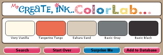 Our Surprise Me Sunday Challenges are based on randomly selected colors. I simply take the first Surprise Me color combo that came up on the ColorLab. This type of challenge stretches your imagination to put together colors you may not normally have put together. Sometimes you'll be surprised by how great colors will work together! Have fun and share your creations below: