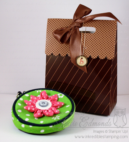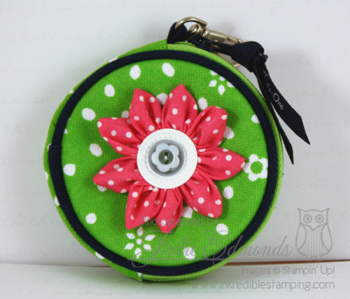 Each year at convention Stampin' Up! gives out a bag to keep all your supplies in. They come up with some of the best bags ever!! (I'm a bit of a bag junkie and when it's done is SU colors and patterns there is nothing better in my book) But in that sea of similar bags it's easy to loose track of YOUR bag – so I always like to clip a few personal touches onto my bag to make it stand out better.