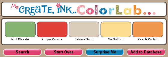 Our Surprise Me Sunday Challenges are based on randomly selected colors. I simply take the first Surprise Me color combo that came up on the ColorLab. This type of challenge stretches your imagination to put together colors you may not normally have put together. Sometimes you'll be surprised by how great colors will work together! Have fun and share your creations below: