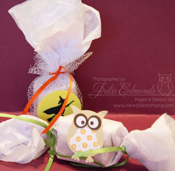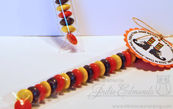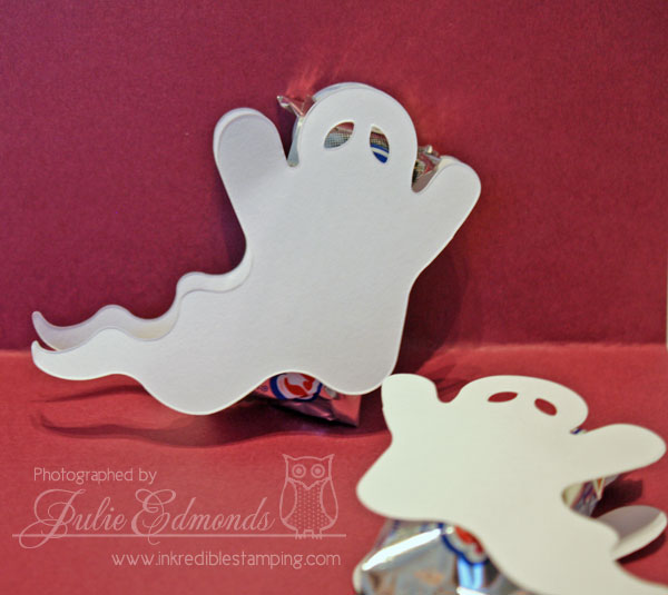 This cute little die cut ghost is hiding a chocolate goodie!! Too cute and so simple!! Those are my favorite kind of ideas!!
