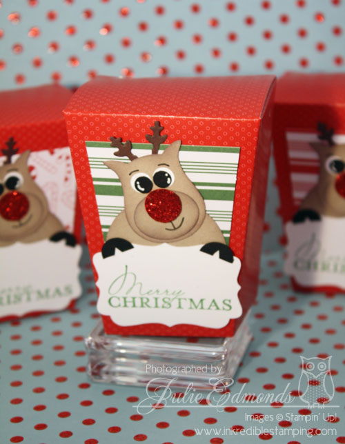 The boxes and the background paper came in the kit I just added the Rudolph and OMG is he not the cutest thing in the world??? I love his very very shiny nose…