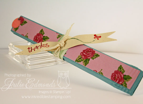 The second gift idea I came up with was a package for a nail file – a GREAT Hostess gift for a Thirty-One Party. And of course these ideas would be fun for a Spa Themed Birthday Party for girls!