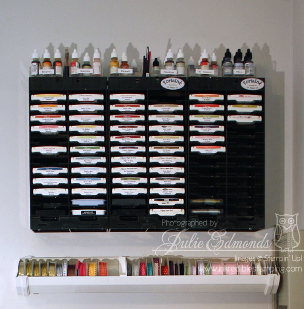 The other day I posted about getting my Ribbon organized but it seems like a LOT of you were more interested in my Stamp Pad Holder that was hanging on the wall above my ribbon then you were in the ribbon π I had a lot of e-mails asking me about them so here's the info…