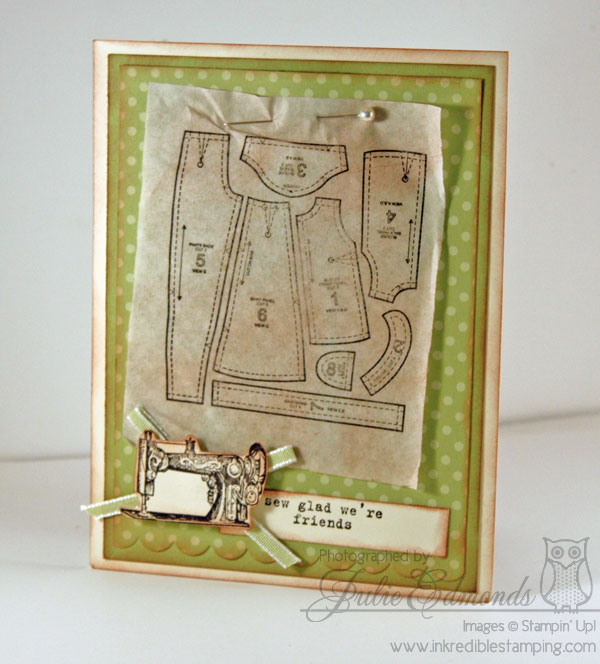 The sewing machine and greeting on this card come from Puns From The Past which is retiring.