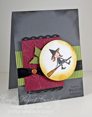 For the inspiration card I created a spooky color scheme of Basic Gray, Lucky Limeade, and Rich Razzleberry! The Witch on the broom is from one of my favorite Halloween stamp sets this year Out on a Limb (See It Online) to create this Sending You Love card. It's an easy card to let a friend know you're thinking about them and you can easily change up the color scheme to something a bit more romantic for a card you can send to your special someone!