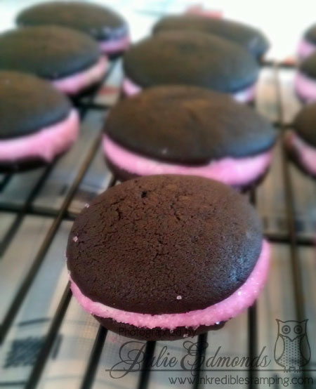 If you follow me on Facebook you saw my post about Making Whoopie pies for our Sweets and Stamping Crop last night. They were a big hit and I wanted to share the recipes with you. Enjoy…