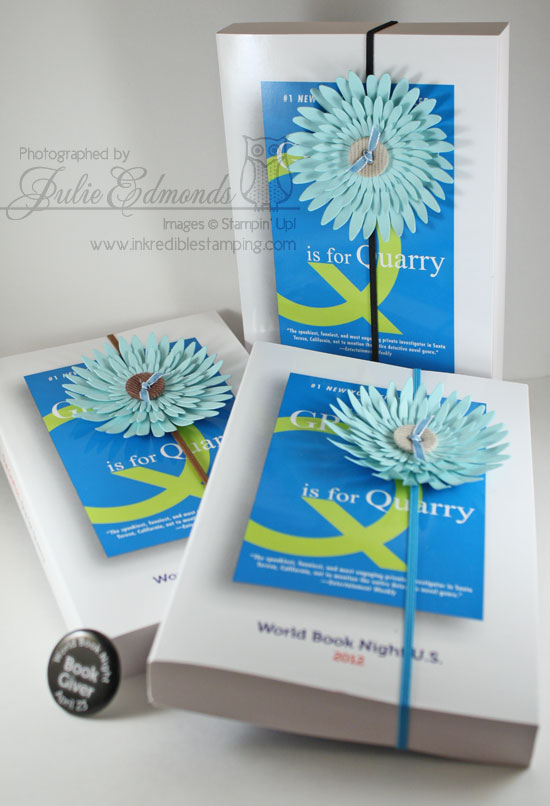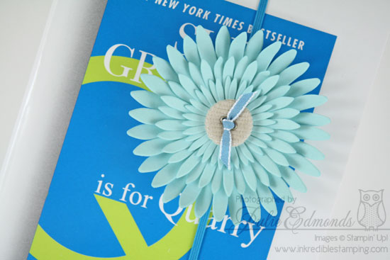 I used the Daisies Die to die cut Pool Party card stock and create flowers to decorate the bungee bookmark. The color complimented the cover of Q for Quarry perfectly!!