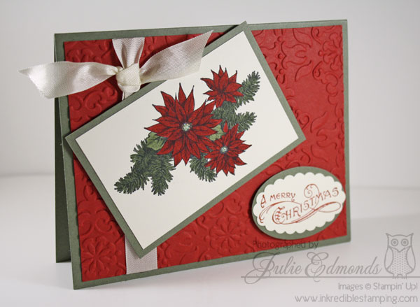 Serena created this beautiful card using the Bells & Boughs stamp set (121142). I love the way she colored the Pointsettias – they're BEAUTIFUL!!