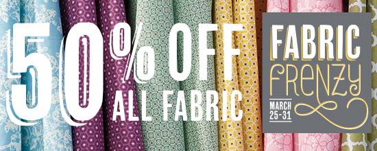 The sale starts Monday and runs for just ONE WEEK!!!, so call all your friends now–and tell them to jump into the spring Fabric Frenzy!