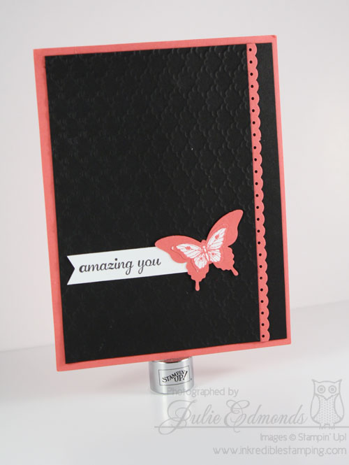 I had fun with a Black Background – not my norm – the texture looks great on it and the Strawberry Slush really pops!