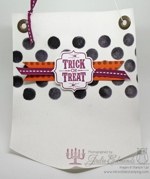 Everyone at stamp camp got to create a Trick or Treat Banner – We used the Tags for You bundle for the Trick or Treat greeting and a few other accessories to finish off the proejct.