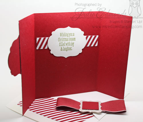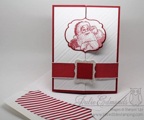 Ingrid’s card was a gatefold with a fun Belly Band – she used the Santa’s List Stamp Set (See it Online)