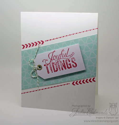 The Stamps come from the Stamp a Tag kit (see it online) and the Christmas Messages set (see it online).