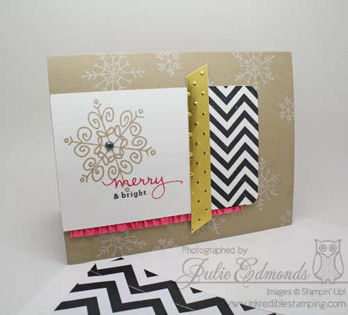Remember this card from last year's Christmas Card Class?? This fun non-traditional colored card was one of my favorites. In Strawberry Slush and Basic Black it was funky and bright – but switch it up to traditional colors and you'll get an elegant look!!