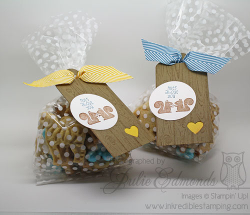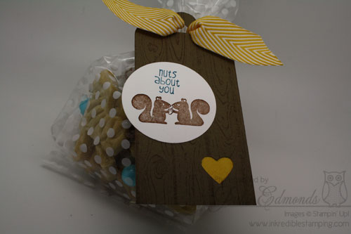 We used the Nuts About You hostess stamp set and focused on the wedding colors – it's not the most "bridal" of wedding projects – but just PERFECT for this couple..