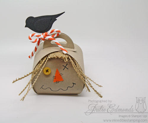 So of course I had to get into the fun and make up some scarecrows of my own. Mom was going out to dinner last night and wanted to hand out some treats so we made up some Curvy Keepsake Boxes and dressed them up as scarecrows…