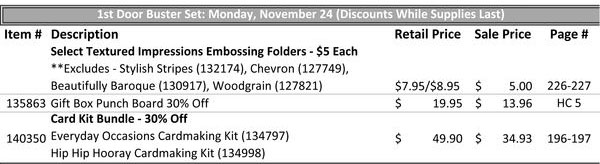 Don't miss select $5.00 embossing folders and the Gift Box Punch board for 30% off!!