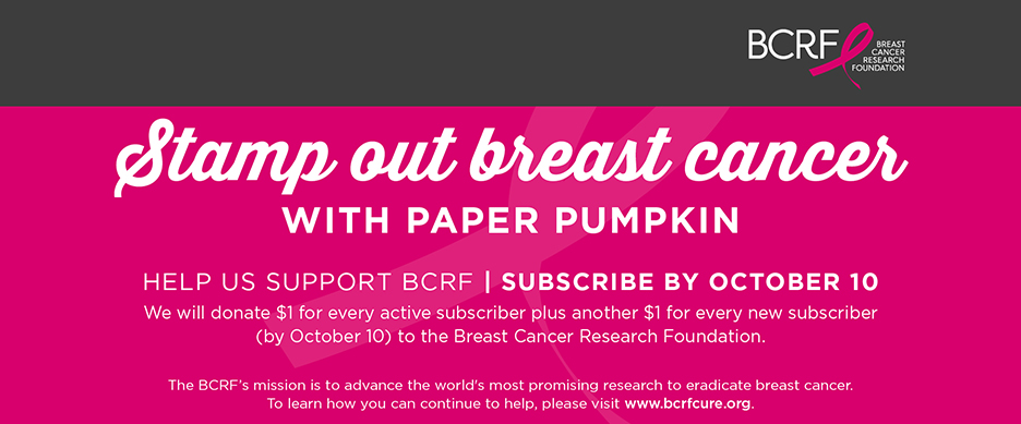 To show our support for Breast Cancer Awareness Month, Stampin' UP! is going PINK . . . or at least our October Paper Pumpkin boxes are! And because we know our subscribers want to share the love too, Stampin' Up! will be making a donation on our subscribers behalf to the Breast Cancer Research Foundation (BCRF).
