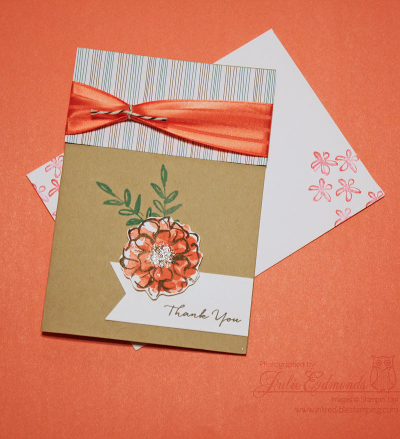 for the second one I changed up the size to a note card and we used the Saleabration set What I Love (which you can earn free with a $50.00 order)
