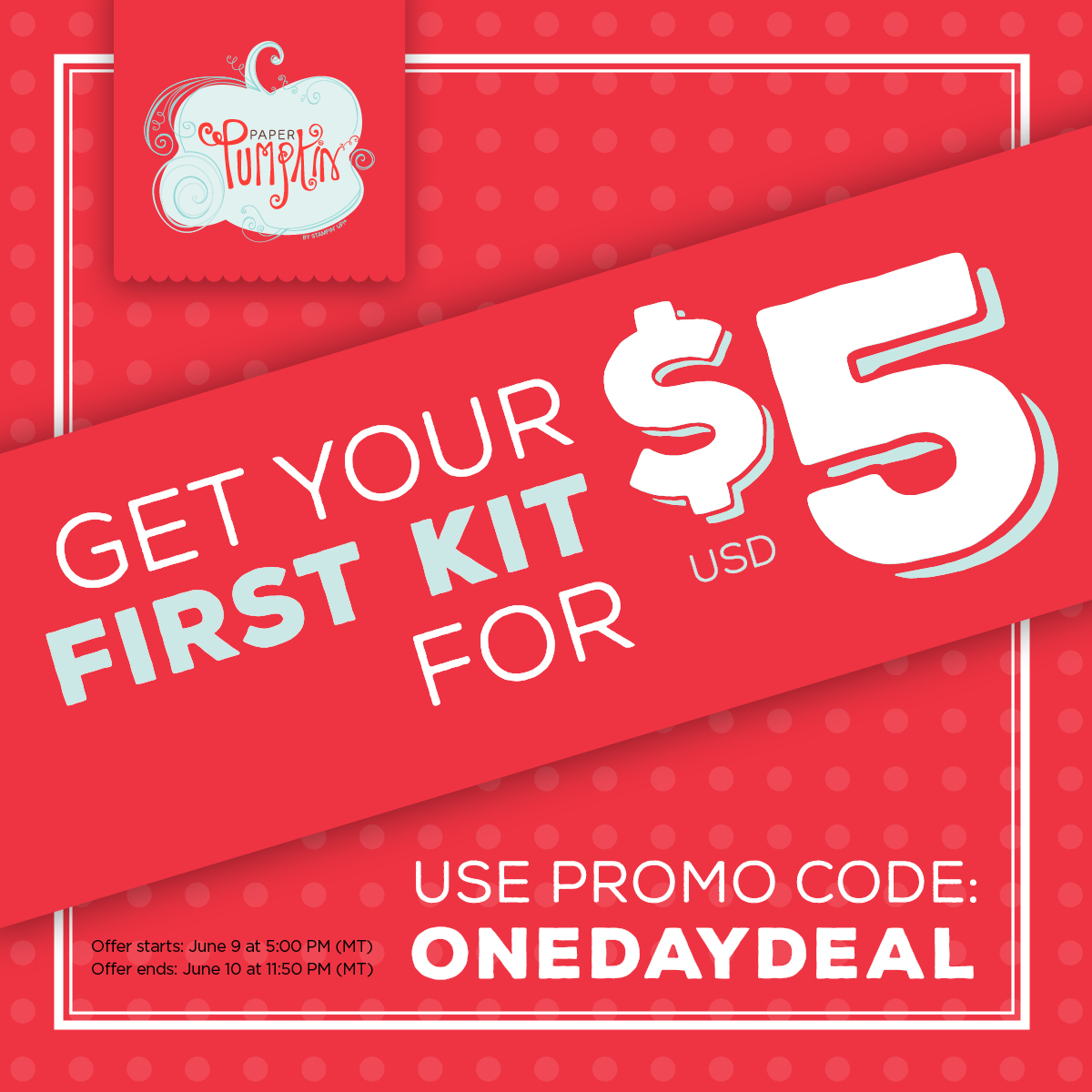 Have you ever said, “One day I’ll sign up for Paper Pumpkin.”? Today is that day! Use promo code “ONEDAYDEAL” at PaperPumpkin.com and get your first kit for just $5 USD.