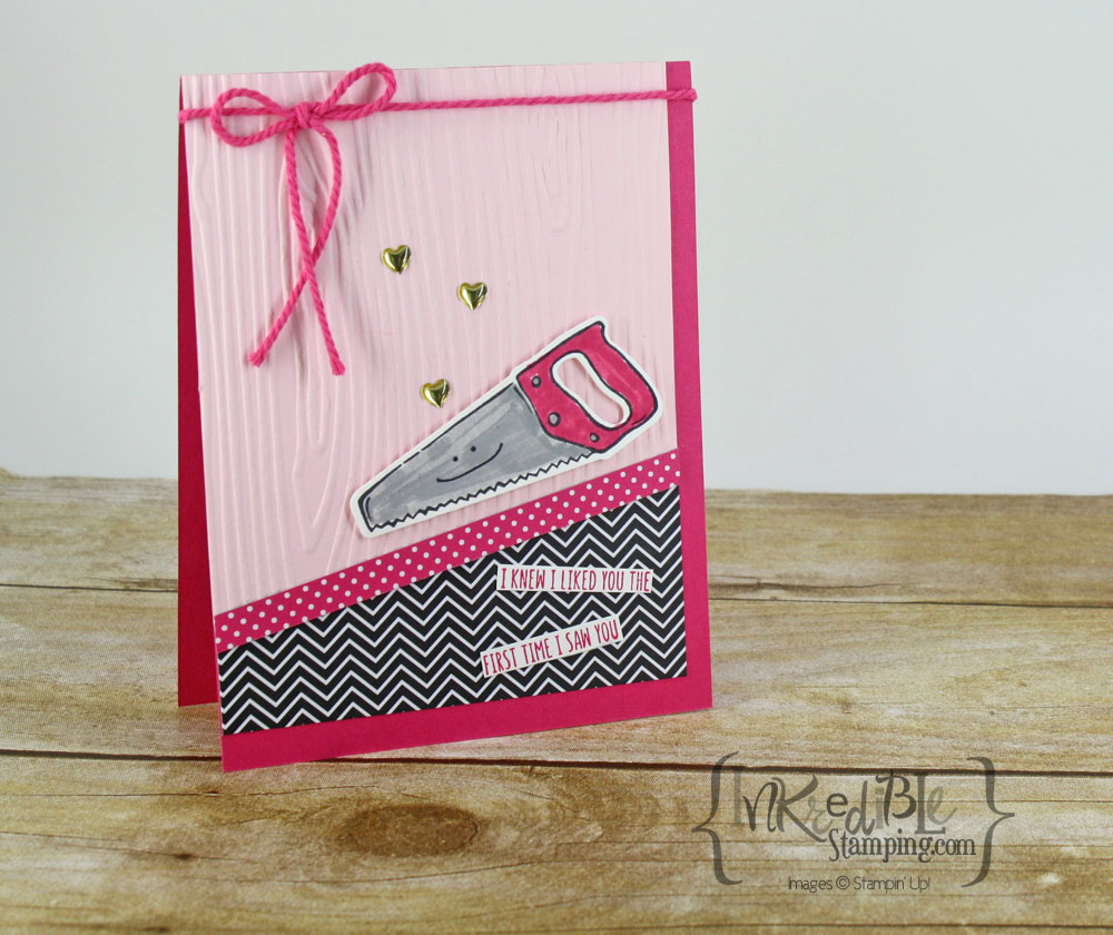 The new Nailed It stamp set in the Occasions Catalog is perfect for Father's Day cards – but I wanted to play around with it and create cards for other occasions like this Valentines Card.