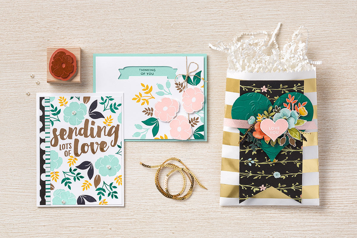 For this card we kept it simple. Stamping on card stock, add in a little Merry Music Designer Series Paper and brush the star with Wink of Stella and you've got a Christmas Card you can stamp a whole stack of pretty quickly!!